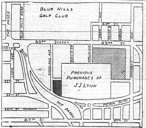 Two purchases have been made by Mr. Lynn this year. The more recent was the acquisition from the Harper estate of the ground between Woodland avenue, what would be Michigan avenue, Sixty-fifth street and the junction of Meyer boulevard and the Paseo. This property of approximately three acres was bought for $10,000 through the Rieger-Moore Realty Company. A sixth block of boulevard frontage was added to the Lynn holdings through this purchase just made.