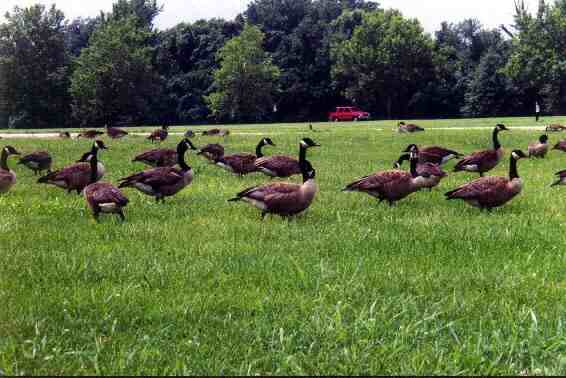 There are several ball fields in this section of the park. The outfield was in use this summer day by a large flock of geese.
